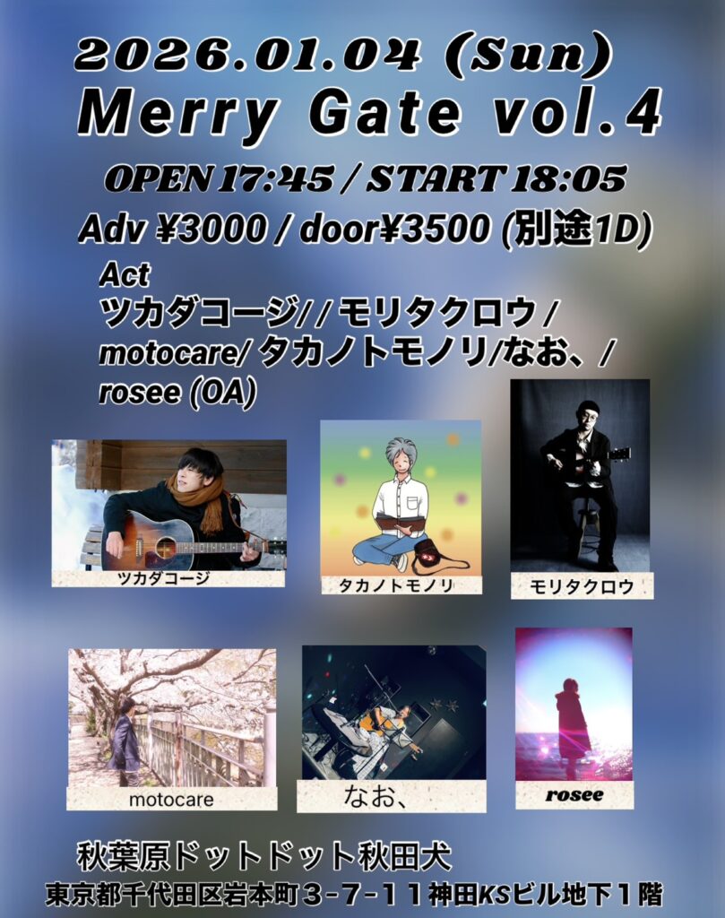| 出演 | タカノトモノリ (18時5分から30分の出演予定です。) ツカダコージ モリタクロウ なお、 motocare O.A rosee |