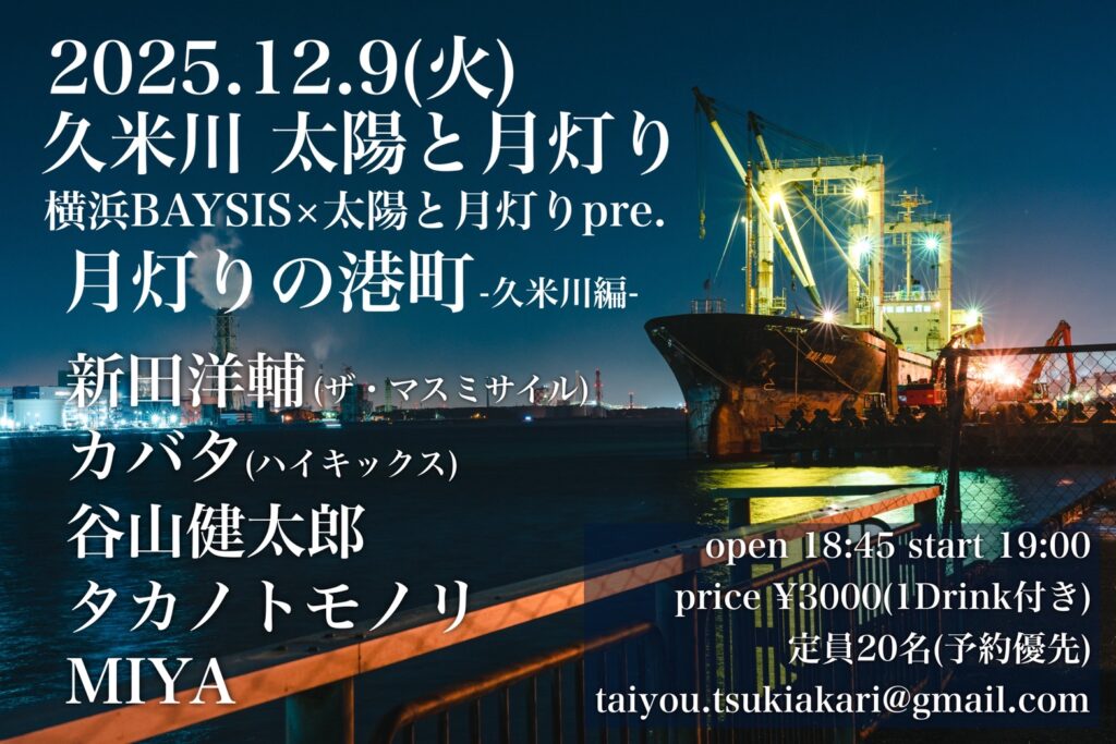 | 出演 | タカノトモノリ (19時から30分の出演予定です。) MIYA カバタ 谷山健太郎 新田洋輔 |